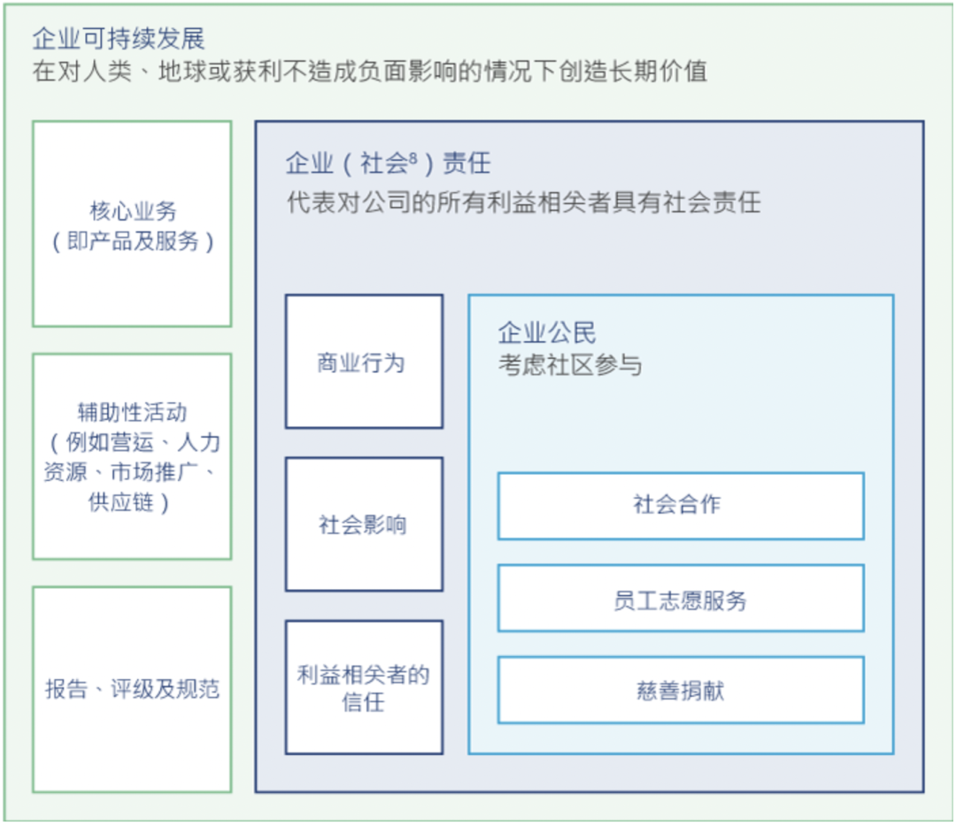 8 社会 = 与社会相关; 企业社会责任的理念不只限于慈善工作; 责任包括社会、环境及治理等方面。